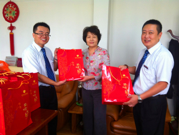 月到中秋分外明,人到佳節(jié)別樣親。在一年一度的中秋佳節(jié)來臨之際,為了給員工營造一個(gè)溫馨、喜慶、祥和的節(jié)日氣氛,讓員工深刻感受“香江集團(tuán)”大家庭的人文關(guān)懷,香江商業(yè)集團(tuán)天津地區(qū)特組織了高管中秋慰問活動(dòng)。9月24日,華北區(qū)域副總經(jīng)理鄭春雪親自帶隊(duì),組成中秋慰問組,分別前往天津三個(gè)門店進(jìn)行親切慰問,向一線員工們致以節(jié)日的問候,并送去了香江月餅等慰問品。