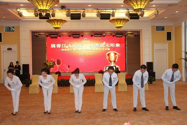 9月25日,“展香江人風(fēng)采,樹酒店人形象”錦繡香江酒店第一屆員工服務(wù)禮儀大賽在錦繡宴會廳舉行。