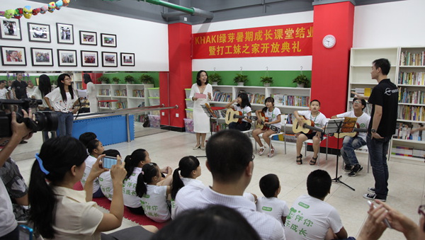 8月3日,一個特殊的結業(yè)典禮在廣州赤崗的綠芽基金會活動中心舉行。20多名外來工子弟在這里系統(tǒng)地學習了小公民教育、青春期關愛、自我管理、興趣開發(fā)等課程。這個留守孩子暑期成長課堂,讓“小候鳥”們在白天有了能學到東西的一個“落腳點”,讓參與的孩子過上一個不再孤單而又豐富多彩的假期。小朋友們表演了吉他彈唱、舞蹈、詩歌朗誦等節(jié)目,贏得了在場嘉賓和媒體、家長代表的陣陣掌聲。