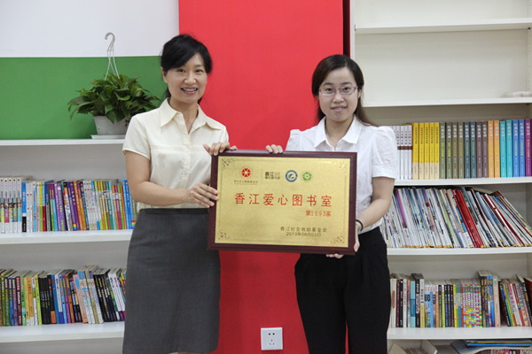 綠芽暑期成長課堂結業(yè)典禮上,香江社會救助基金會副秘書長龍翠婷向綠芽基金會代表授牌,第1093間香江愛心圖書室正式落戶廣州赤崗的綠芽基金會活動中心。這也是香江愛心圖書館項目進入深圳和東莞等外來兒童聚居的大城市后,首次落戶廣州。