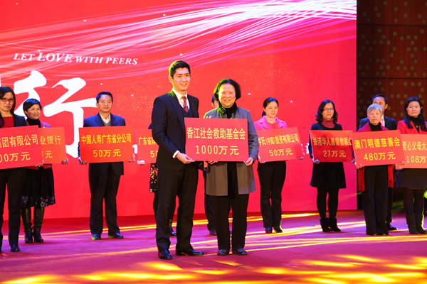 12月26日,由廣東省婦聯(lián)、廣東省關心下一代工作委員會、香江集團和廣東省婦女兒童基金會聯(lián)合主辦,香江社會救助基金會和廣東省女企業(yè)家協(xié)會協(xié)辦的“大愛同行——廣東關愛婦女兒童慈善匯”在廣州隆重舉行,廣東省委副書記馬興瑞,省人大原主任張幗英,省政府副省長林少春等領導出席了活動。本次“慈善匯”旨在聯(lián)結社會組織,融合社會資源,倡揚扶貧濟困、助人為樂的社會風尚,得到社會各界的廣泛支持,匯聚四面八方的愛心,有社會組織、志愿者隊伍和熱心群眾;有國有企業(yè),也有民營企業(yè);更有來自省內,及來自港澳地區(qū)的代表。當晚,香江集團現(xiàn)場捐資1000萬元,而現(xiàn)場由香江集團組織并發(fā)起的現(xiàn)場義捐、義賣、義演共募集到澳門明德慈善會、廣東省紅十字會、廣藥集團有限公司等現(xiàn)場愛心企業(yè)、社會組織和愛心人士的善款共3063萬元。