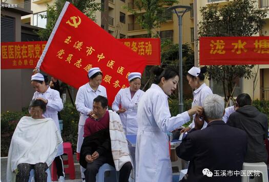 針灸科表演公民道德歌,宣傳社會(huì)主義核心價(jià)值觀。