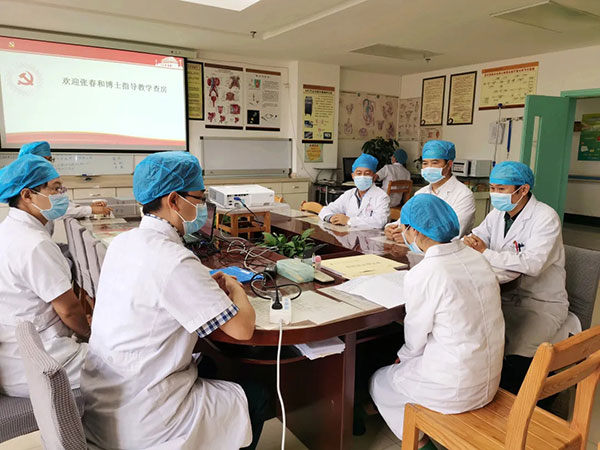義診活動(dòng)前,張春和博士參與了泌尿外科的晨交班現(xiàn)場(chǎng)進(jìn)行指導(dǎo),開展了教學(xué)工作督導(dǎo),并進(jìn)行教學(xué)查房。