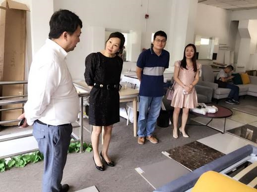 On June 6, Mei Hing Chak (president of Heungkong Group), Li Shaozhen (vice president of Heungkong Group), Fan Luoyi (assistant president of Shenzhen Heungkong Holding Co., Ltd.), Liang Wei (director of Information Technology Department of Heungkong Group) and other personnel went to Country Garden OHome of Guangzhou Science and Technology Park for exchange and accumulated experience for exploring new retail model of Heungkong Furniture.