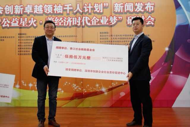 研討會(huì)現(xiàn)場(chǎng),“社會(huì)創(chuàng)新卓越領(lǐng)袖千人培育計(jì)劃”子項(xiàng)目之“公益星火二期———企業(yè)家戰(zhàn)略慈善計(jì)劃”獲得多家全國知名企業(yè)和基金會(huì)共計(jì)175萬元捐贈(zèng)。其中,香江社會(huì)救助基金會(huì)捐贈(zèng)55萬元設(shè)立“公益星火媒體人專項(xiàng)獎(jiǎng)學(xué)金”,用于獎(jiǎng)勵(lì)與培育10位助推新型慈善公益事業(yè)策劃與傳播的高級(jí)媒體人。