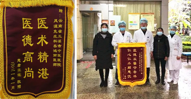 1月22日,四位曾經(jīng)在急診內(nèi)科門(mén)診中醫(yī)綜合治療區(qū)治療過(guò)的患者,手持一面錦旗和一束鮮花,向門(mén)診中醫(yī)綜合治療區(qū)的全體醫(yī)護(hù)人員表示最誠(chéng)摯的敬意和萬(wàn)分的感謝。