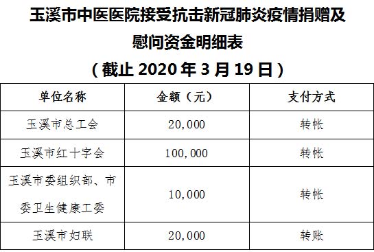 萬眾一心、同心協(xié)力 玉溪市中醫(yī)醫(yī)院接受抗擊新冠肺炎疫情捐贈公示(第一批)
