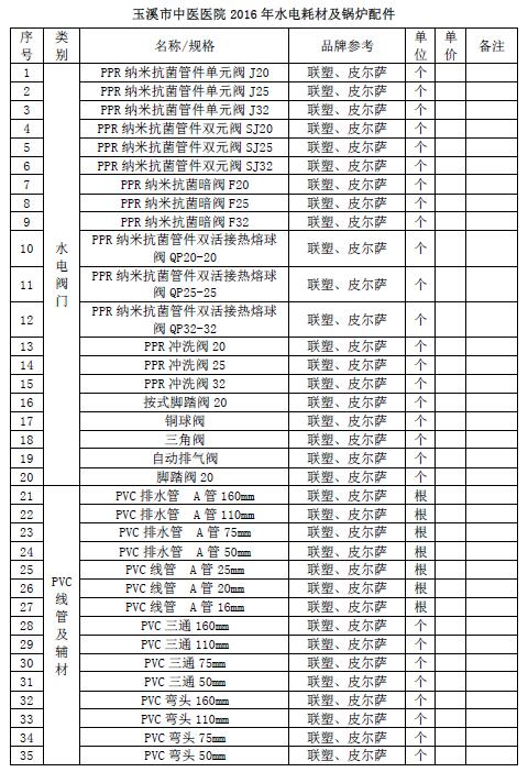 玉溪市中醫(yī)醫(yī)院水電耗材及鍋爐配件競爭性談判公告