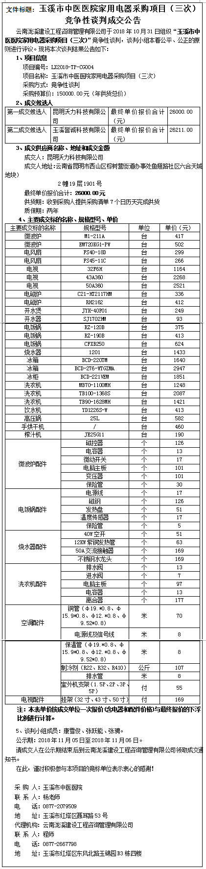 玉溪市中醫(yī)醫(yī)院家用電器采購(gòu)項(xiàng)目(三次)