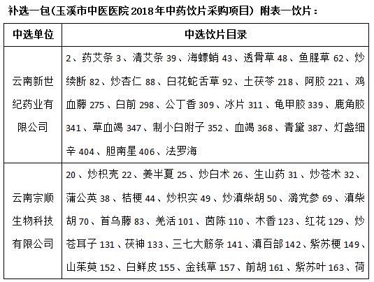 玉溪市中醫(yī)醫(yī)院2018年中藥飲片采購(gòu)項(xiàng)目(二次補(bǔ)選)中選公示