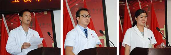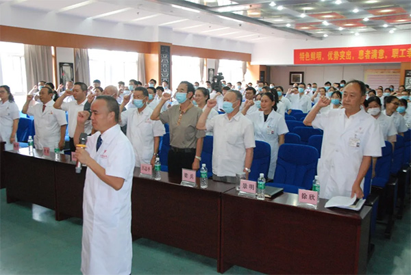 “我宣誓:我志愿獻(xiàn)身人類的健康事業(yè),自覺(jué)維護(hù)醫(yī)學(xué)的尊嚴(yán)和神圣……”在景明院長(zhǎng)的帶領(lǐng)下,全體醫(yī)師們莊嚴(yán)地重溫了《中國(guó)醫(yī)師宣言》。雄壯高昂的聲音,震撼了每一個(gè)人的心靈,讓大家再次堅(jiān)定了投身醫(yī)療事業(yè)、維護(hù)醫(yī)學(xué)神圣,服務(wù)患者、尊重生命的決心!
