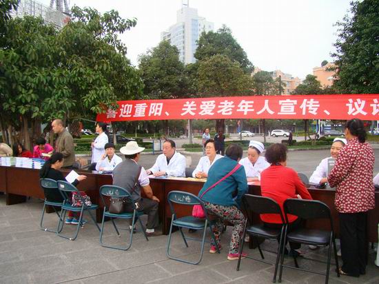 每年的九月初九是重陽節(jié),又稱敬老節(jié)。時值重陽節(jié)臨近之際,為大力倡導科學、健康的生活方式,努力為廣大老年朋友營造一個健康、文明、舒適、和諧的環(huán)境,由市衛(wèi)生和計劃生育委員會組織市人民醫(yī)院、市中醫(yī)醫(yī)院、市第二人民醫(yī)院醫(yī)護人員共同到聶耳文化廣場開展 “喜迎重陽、關(guān)愛老年人宣傳、義診活動”。