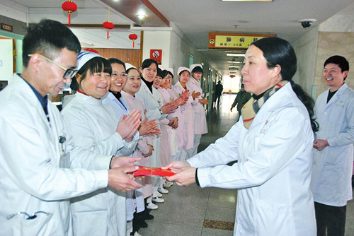 由于工作的需要,不少臨床一線的醫(yī)護(hù)技人員、后勤員工在新春佳節(jié)也不能回家與家人團(tuán)聚,堅(jiān)守在工作的一線,為春節(jié)期間仍需留院的患者及就診群從服務(wù)。大年三十這天,市中醫(yī)醫(yī)院值班醫(yī)護(hù)人員仍象往常一樣,忙碌在各自崗位上。楊洋副市長(zhǎng)一行先后來到肺病科和科民族民間醫(yī)藥科,與醫(yī)護(hù)人員親切交談,詢問值班人員的工作和生活等情況,向他們用其家人拜年,祝他們身體健康、工作順利、新春愉快。對(duì)大家在節(jié)日期間堅(jiān)守工作崗位,守護(hù)人民群眾生命健康的無私奉獻(xiàn)精神給予高度贊揚(yáng),感謝他們?yōu)槿嗣袢罕姷纳眢w健康所作出的貢獻(xiàn)。并對(duì)醫(yī)院一年以來所做的工作給予了充分肯定,勉勵(lì)大家在新的一年里立足本職崗位,再接再厲,再創(chuàng)佳績(jī)。