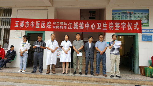 近日,為契合老百姓看病需求,我院特地選擇了江川江城鎮(zhèn)人多熱鬧的趕集天。在楊玲院長的帶領(lǐng)下,心病科、內(nèi)分泌科、脾胃病科、泌尿外科、針灸推拿科共17位專家到江川江城鎮(zhèn)衛(wèi)生院開展“五進”大型義診活動,使醫(yī)院服務(wù)基層的覆蓋面進一步擴大,也將“五進活動”引向深入。同時與江城鎮(zhèn)中心衛(wèi)生院簽訂了對口幫扶、雙向轉(zhuǎn)診協(xié)議書。活動得到了江川區(qū)政府、江川區(qū)衛(wèi)計局的高度重視,江川區(qū)政府副區(qū)長周福榮親臨義診現(xiàn)場并出席對口幫扶、雙向轉(zhuǎn)診協(xié)議的簽訂儀式。