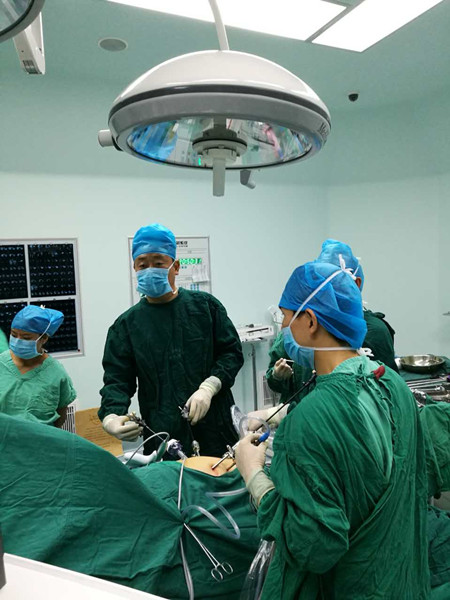 11月10日上午,著名外科專家,主任醫(yī)師,徐欣副院長(zhǎng)成功順利完成腹腔鏡下解剖性左半肝切除術(shù)?;颊吲裕?5歲,B超、CT、MRICP檢查發(fā)現(xiàn)并明確左肝內(nèi)巨大血管瘤,為8.1cmx6.6cmx9.4cm。該腫瘤若采用傳統(tǒng)開(kāi)刀切除,切口大,創(chuàng)傷大。經(jīng)周密的術(shù)前會(huì)診討論和充分的術(shù)前準(zhǔn)備,徐副院長(zhǎng)決定采用腹腔鏡(微創(chuàng))方法為患者切除腫瘤,最大限度為患者減輕痛苦。整個(gè)手術(shù)過(guò)程順利,患者恢復(fù)良好,現(xiàn)已出院。