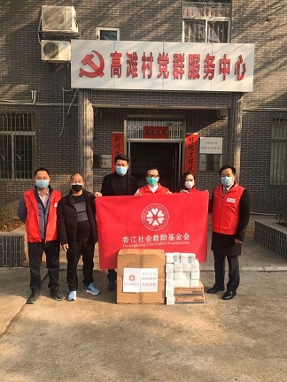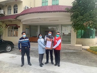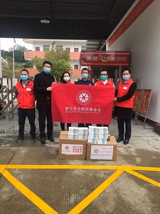 2020年2月19日,由香江健康山谷酒管總經(jīng)理吳宣林先生帶領(lǐng)團(tuán)隊(duì),代表香江基金分別向增城派潭鎮(zhèn)高灘村委、派潭鎮(zhèn)公安局、派潭鎮(zhèn)消防大隊(duì)及林場(chǎng)捐贈(zèng)抗疫醫(yī)療物資,分別是一次性口罩2000個(gè)、乙醇消毒液200瓶、免洗手消毒液240支。
