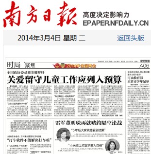 除了主管部門和經(jīng)費(fèi)保障,翟美卿還呼吁,有必要建立一套關(guān)愛留守兒童的制度體系,包括救助保障、醫(yī)療保健、受教育、安全保護(hù)、社會援助等方面。