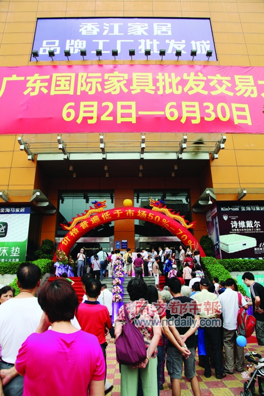 昨日,由全國工商聯(lián)家具裝飾商會(huì)牽頭主辦的“廣東國際家具批發(fā)交易大會(huì)”在廣州、深圳、惠州三地香江家居品牌工廠批發(fā)城聯(lián)合啟幕。“36萬套家居新品、逾千個(gè)家居品牌參展”,加上“普遍低于市場(chǎng)價(jià)50%—70%”,交易大會(huì)啟幕首日就賺了個(gè)“吸納人流逾十萬,首日成交逾2萬件套”的頭彩。據(jù)悉,香江家居品牌工廠批發(fā)城每年將定期舉辦輻射全省的大型批發(fā)采購大會(huì)或博覽會(huì),成為工廠批發(fā)展銷的戰(zhàn)略平臺(tái)。