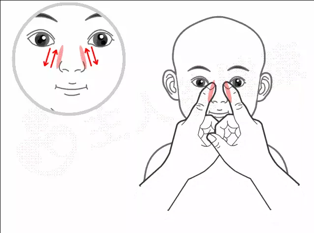 用食指或中指指腹在鼻梁上輕輕的上下來回摩動(dòng),一般按摩15次左右,以有酸感為度。