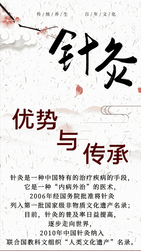 針灸是祖國傳統(tǒng)文化寶庫中的一顆璀璨明珠,凝聚者中華民族智慧和文化精華,是中華民族文化和科學(xué)傳統(tǒng)產(chǎn)生的寶貴遺產(chǎn),千百年來為中華民族的繁衍昌盛作出重要的貢獻(xiàn),保障和增進(jìn)人類健康發(fā)揮重要的作用,對世界文明進(jìn)步產(chǎn)生積極影響。